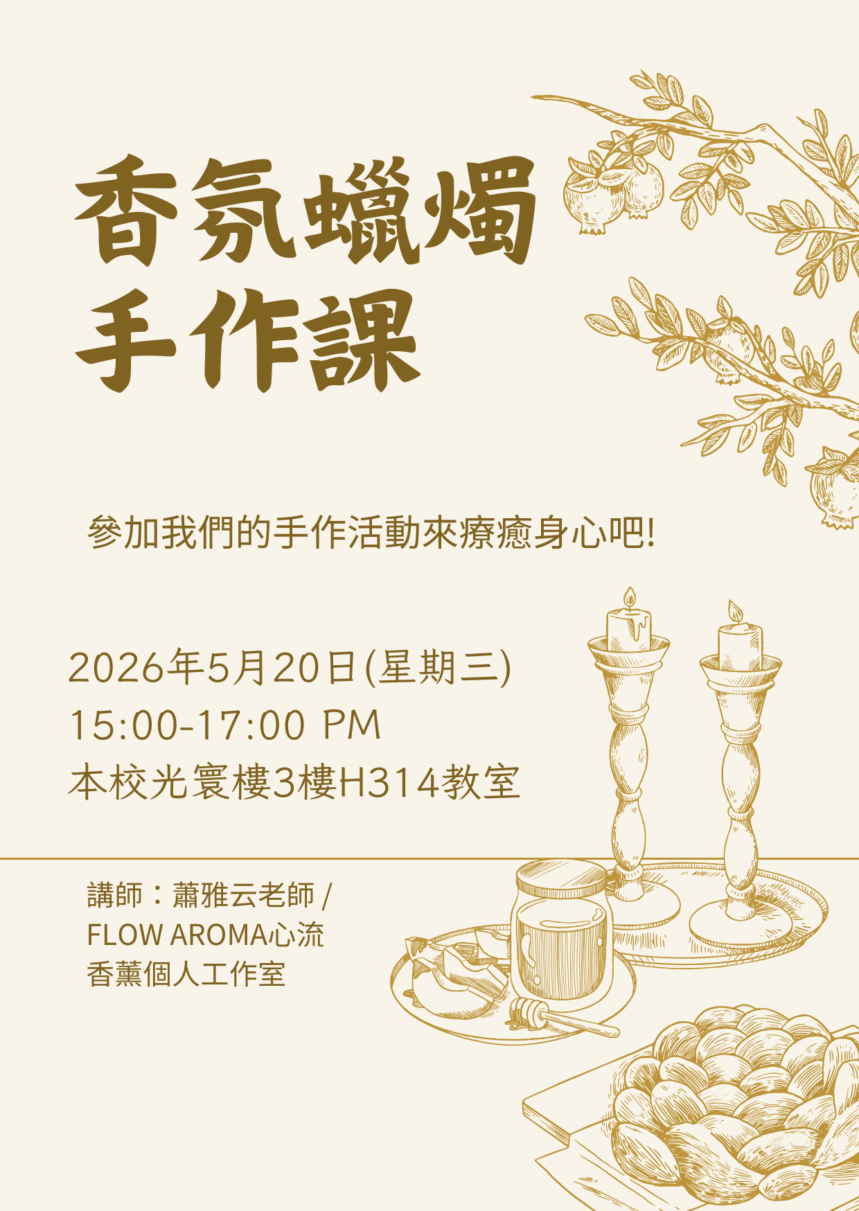 心理健康系列活動【115/5/20(三) 15:00-17:00香氛蠟燭手作課】歡迎踴躍參加