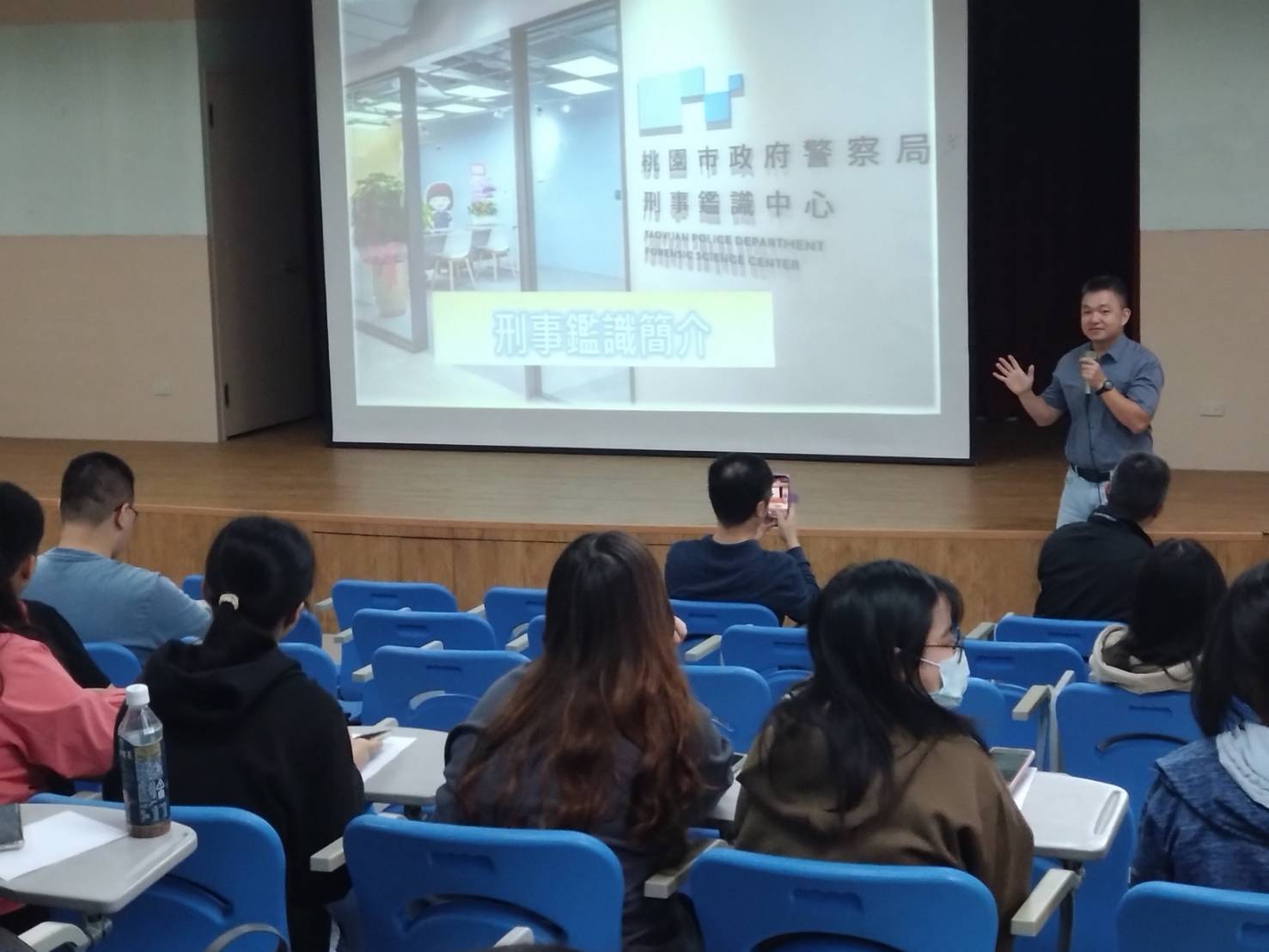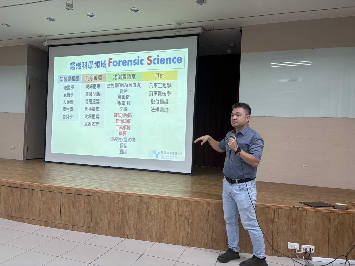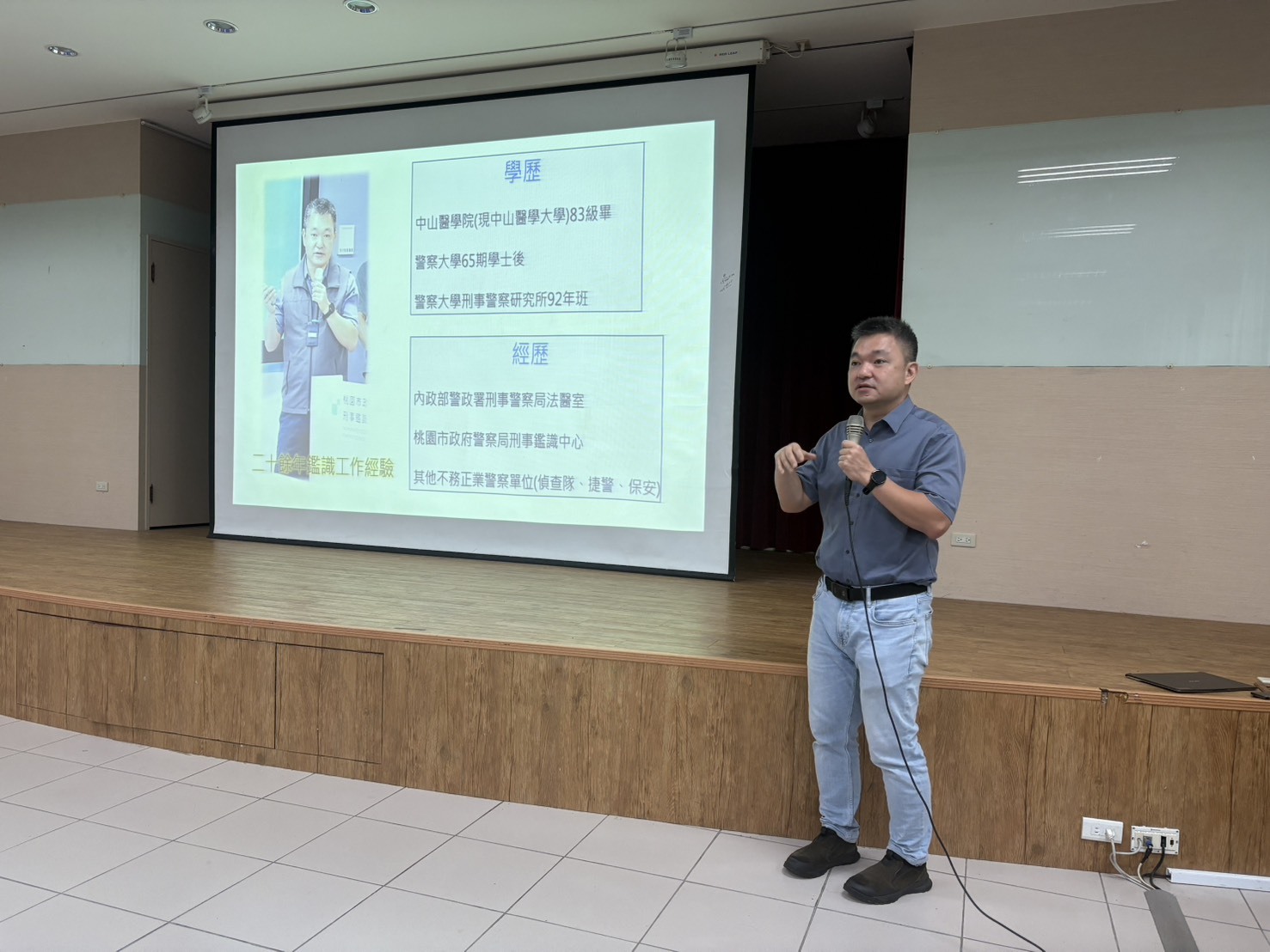 本系於 2025年10月22日(星期三)上午11:00至12:30,在 R100 放射二館階梯教室 舉辦了本學期的生涯/職涯講座。此次特別邀請 桃園市政府警察局刑事鑑識中心聶恒瑞警務正 擔任講師,與本系師生進行一場充實且深具啟發性的交流。
