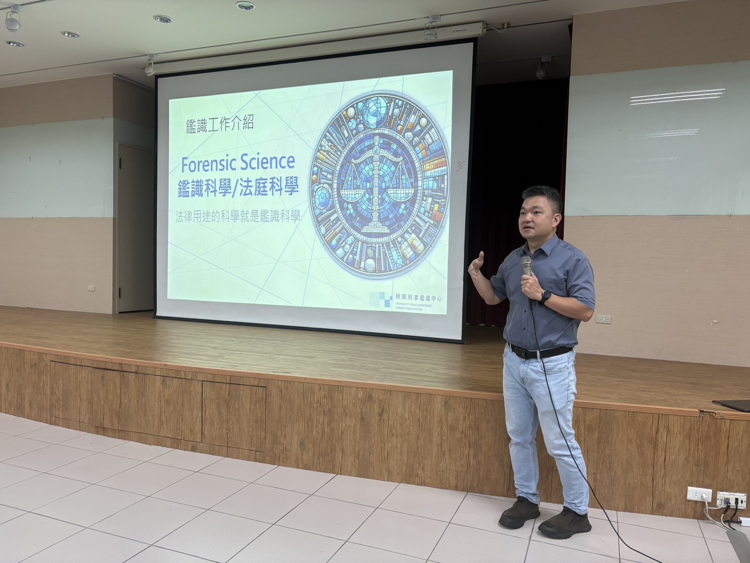 聶恒瑞警務正具備二十餘年豐富的鑑識實務經驗,長期服務於內政部警政署刑事警察局法醫室及桃園市政府警察局刑事鑑識中心,並參與多項重要刑事鑑識案件,專業背景相當扎實。他以「鑑識科學與職涯發展」為題,深入介紹了鑑識科學的多元領域,包括 法醫學、現場勘察、DNA檢驗、毒物分析、指紋鑑識、數位鑑識 等,幫助同學認識專業的廣度與未來職涯發展的多種可能。