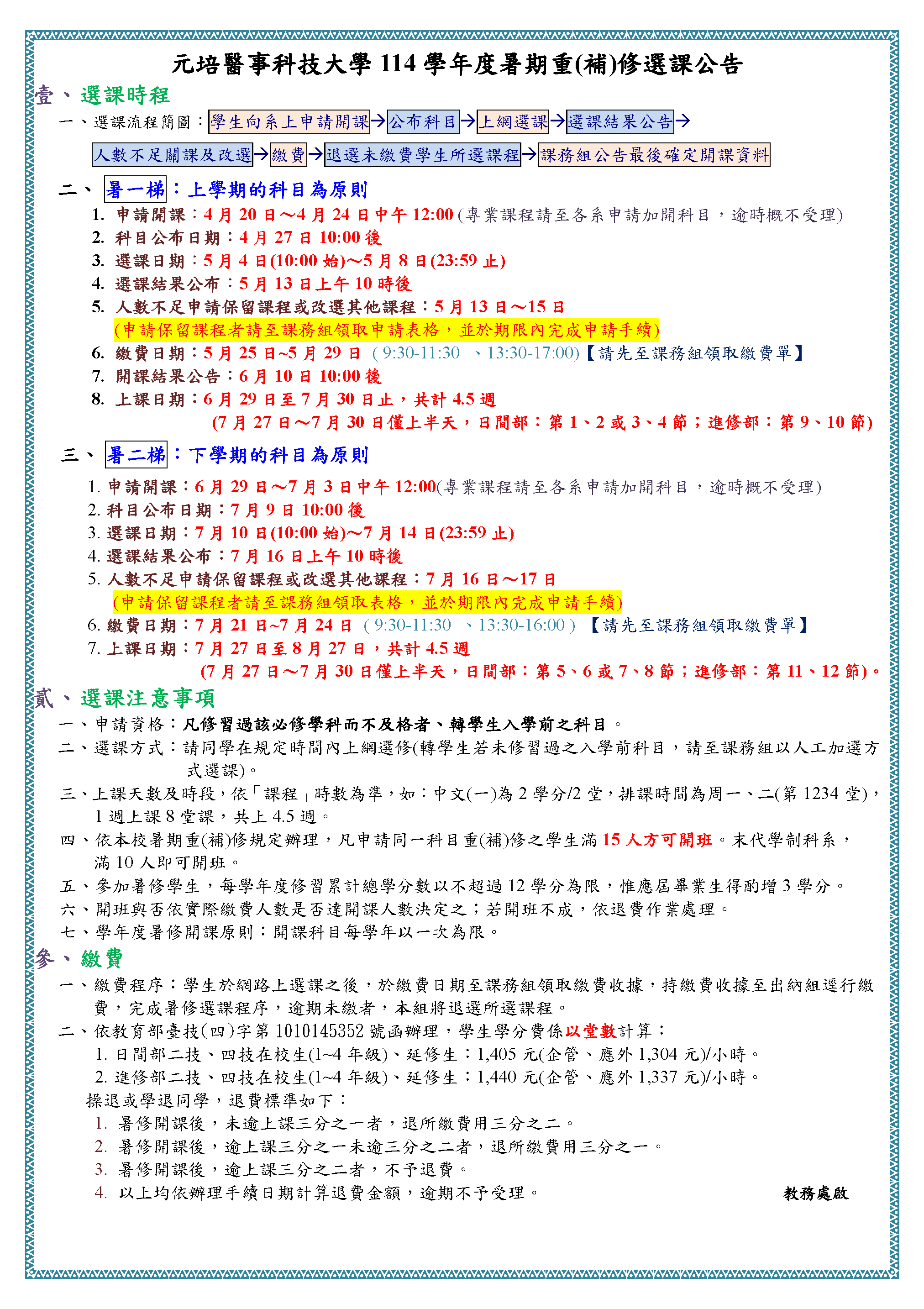 【114學年度暑期重(補)修調查公告】